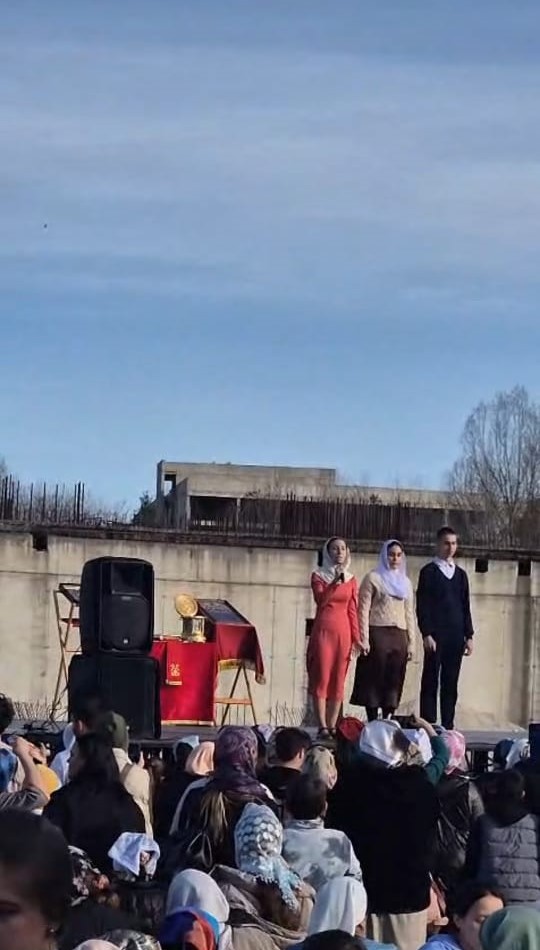 Гусалов Аслан, Джигкаева Валерия и Челахсаева Ангелина прочитали отрывок из поэмы «Се Человек».
