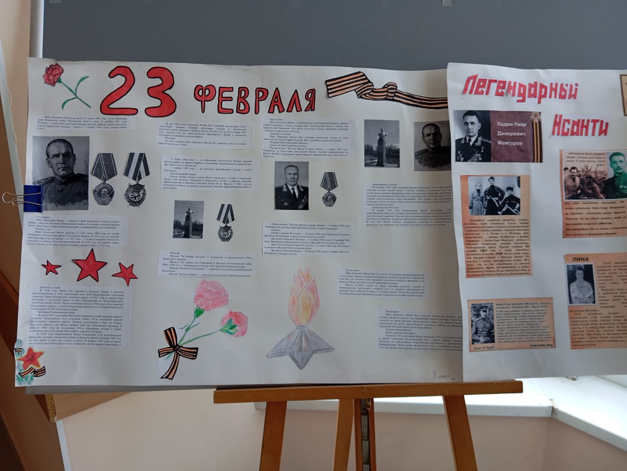 Организована выставка стенгазет и проведена викторина с учащимися на тему «Защитники Отечества».
